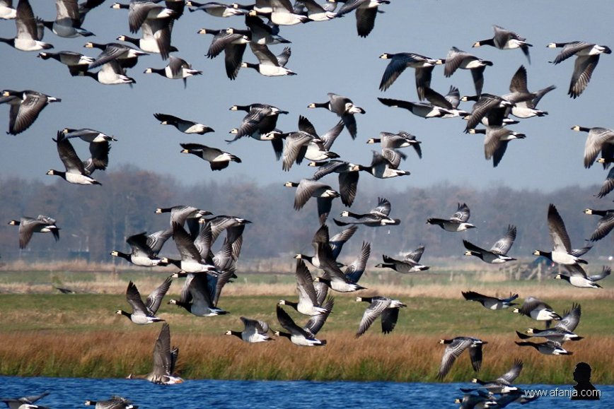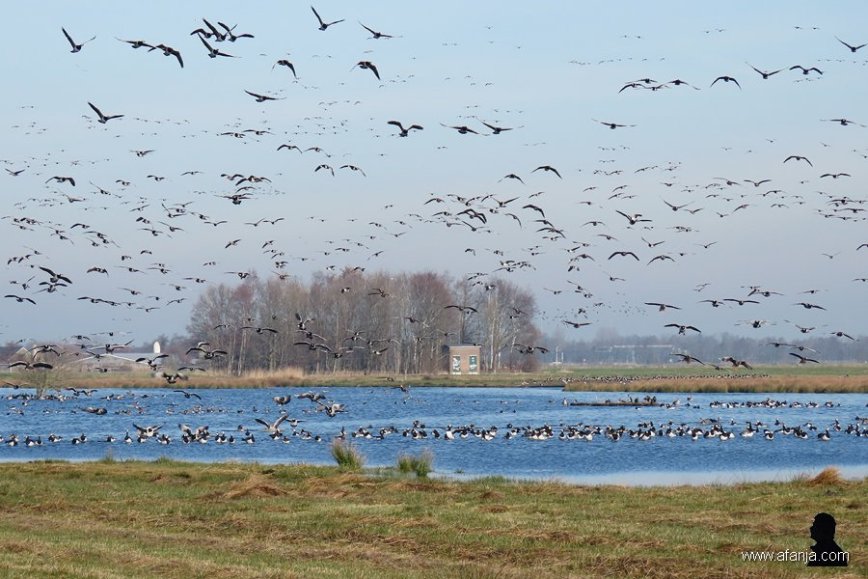 In en rond een klein meertje in een van mijn favoriete natuurgebieden zitten al de hele winter honderden ganzen. Het zijn voornamelijk brandganzen. De afgelopen week heb ik ze een paar keer tegelijk zien opvliegen. Dat is een prachtig beeld dat gepaard gaat met een indrukwekkend geluid …