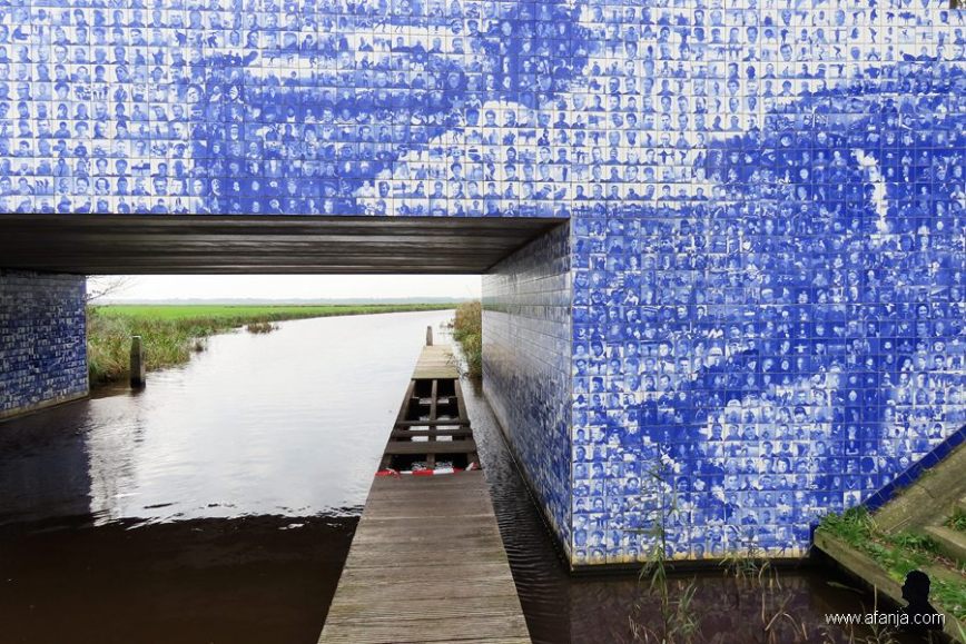 Terwijl we Hegebeintum achter ons lieten, kwamen Tijmen en ik er al pratend achter dat de dag tot nu toe eigenlijk steeds iets met water te maken had gehad. Om de dag in stijl te eindigen, stelde ik voor om op weg terug naar huis nog even een tussenstop te maken bij het Elfstedenmonument dat is aangebracht op de Canterlandse brug (kaartje Google maps). Daar waren we weliswaar allebei al eens geweest, maar Tijmen vond het een prima plan …