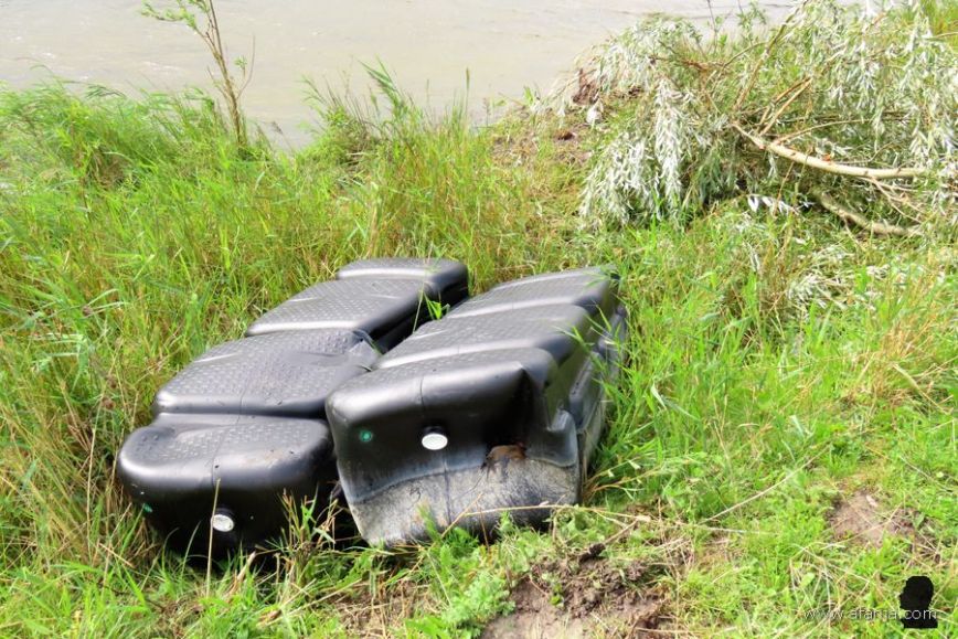 Wat is me dat Jan? Een soort zelfgemaakt vlot van plasticafval?
