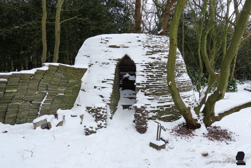 De van tegels gestapelde koepel lijkt in de sneeuw nog meer dan anders op een iglo. Hier is mooi te zien dat de harde wind vanaf de rechterkant kwam, de sneeuw mocht zich links in de luwte ophopen …