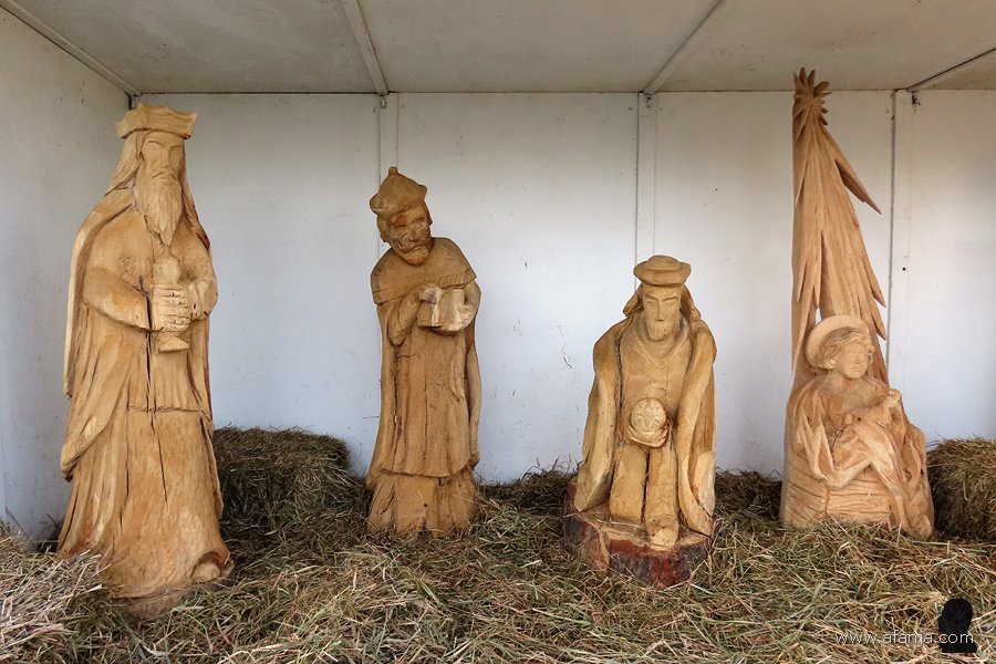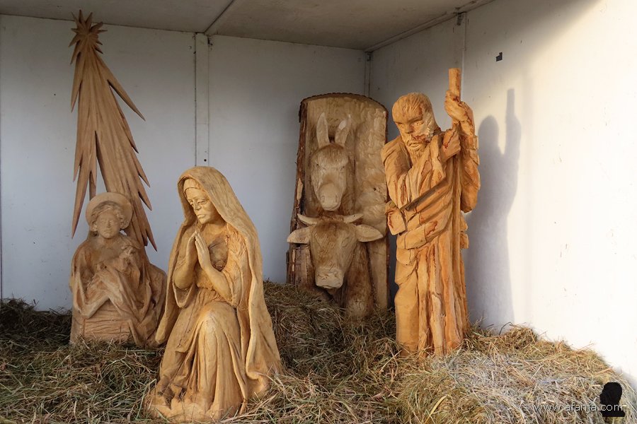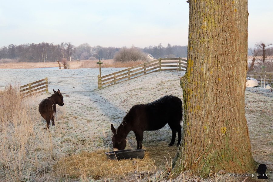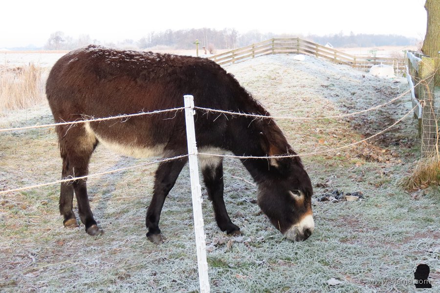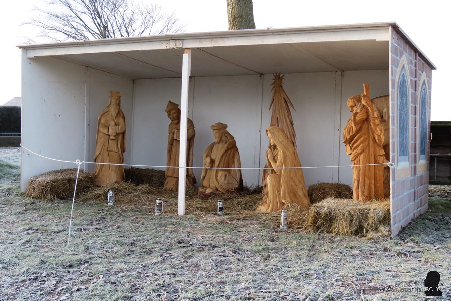 Zelfs een echte ezel ontbrak niet, die had aan de achterkant van de stal een fijn plekje in de luwte gevonden …