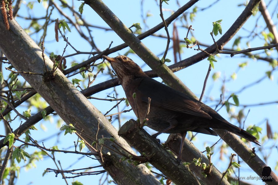 Zelfs toen er op 1 april sneeuw lag bracht de merels vrachten lekkers naar het nest. Daar werden ze steevast met luid gepiep ontvangen …