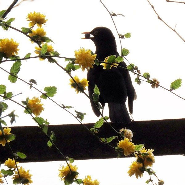 Dat de merels weer plannen hadden om in onze tuin te gaan broeden, was in maart al snel duidelijk. Van de transport- en bouwwerkzaamheden voor een nestje heb ik ditmaal echter geen foto’s kunnen maken …