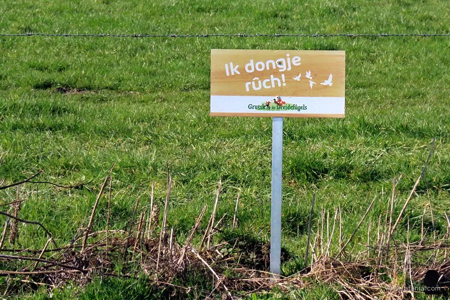 Half maart schreef ik hier een stukje over een bordje met het opschrift ‘Ik dongje rûch – Grutsk op ús Greidefugels’. Vrij vertaald betekent het dat de boer ruige mest of stromest gebruikt om zijn land te bemesten, omdat hij trots is op onze weidevogels. Net als nattigheid en een kruidenrijke vegetatie helpen ruige mest en weidegang van de koeien de weidevogels. Het zorgt voor meer en ander bodemleven. Meer informatie hierover kun je lezen op de website Grutsk op ús Greidefûgels