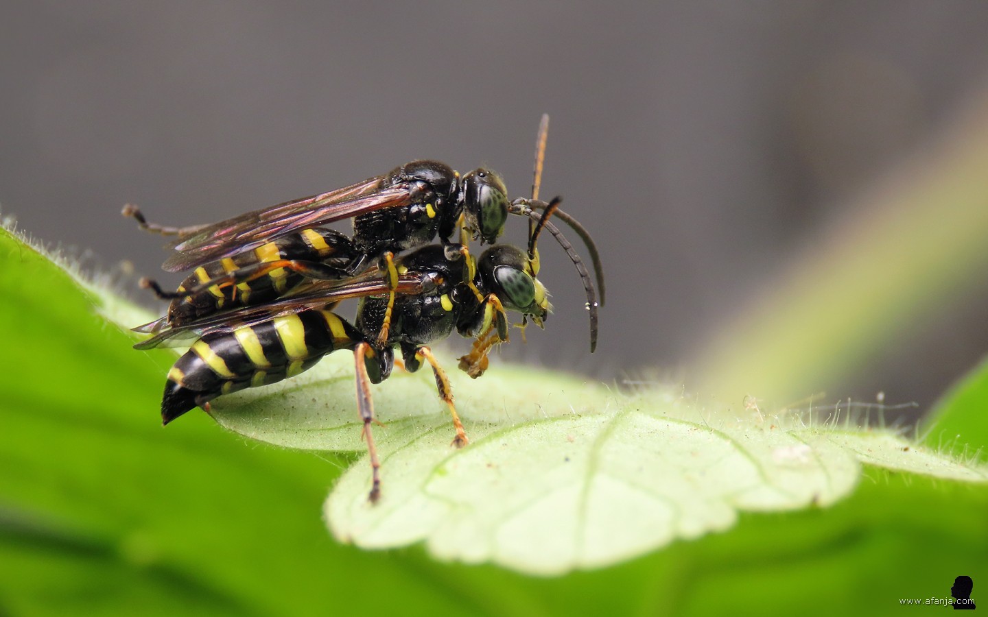 Vandaag gooi ik er nog eens wat foto- en videowerk uit de tuin tegenaan. Dinsdag stuitte ik tijdens een rondgang door de tuin rond het middaguur op een paar niet alledaagse wespen. Obsidentify kwam met verschillende namen op de proppen: graafwesp ‘Gorytes laticinctus’ (3x), Franse veldwesp (2x) en ‘Middelste wesp’ (1x). Daar werd ik niet veel wijzer van, dus ik laat de naam hier maar even in het midden. Maar wie de naam weet, mag het natuurlijk zeggen …