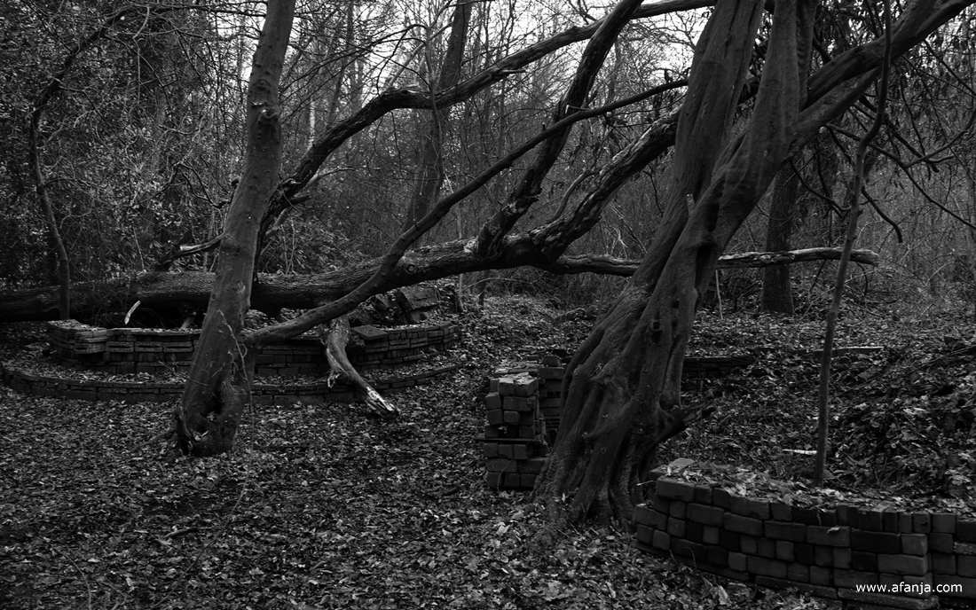 Verder zijn er hier en daar wat nieuwe, kleinere bouwwerken gestapeld. Er wordt dus nog altijd gewerkt in de Ecokathedraal, die onlangs is aangewezen als één van de jonge Rijksmonumenten. Ik ben vanmorgen tot halverwege gekomen, daar heb ik weer even zitten genieten van de rust op het bankje dat de oude baas daar zelf heeft gevormd …