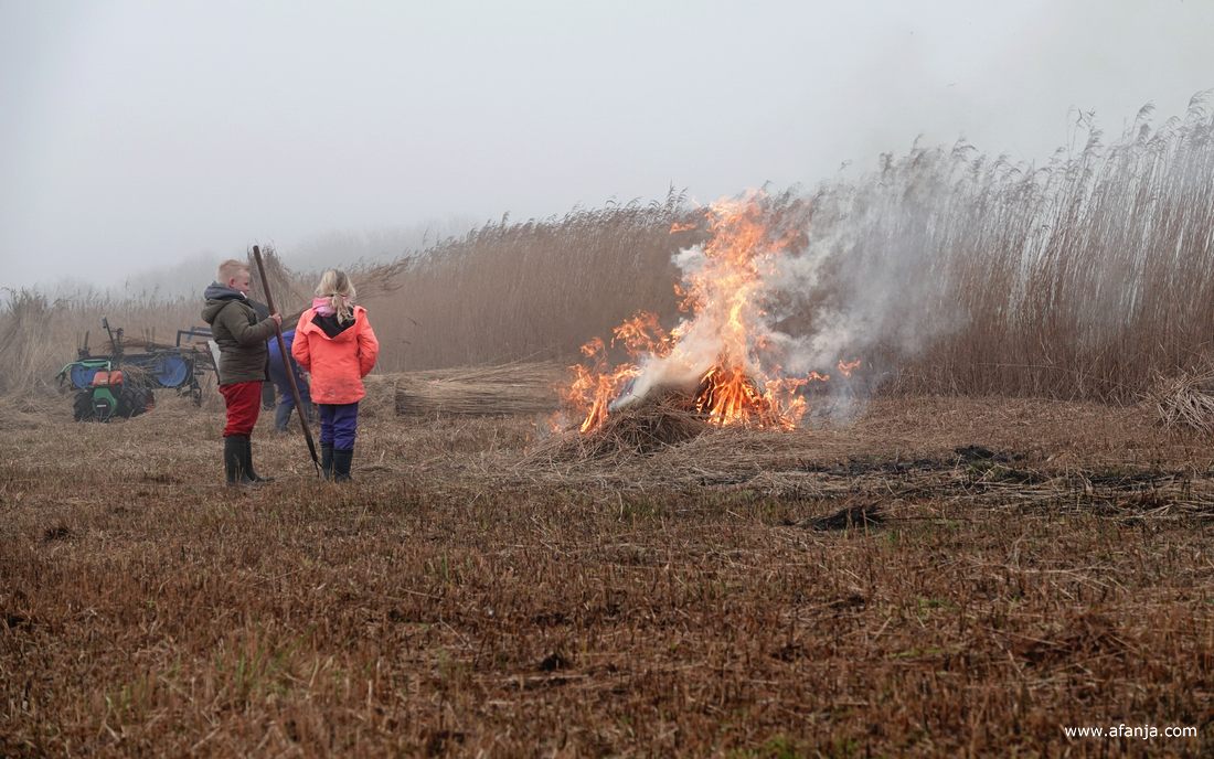 Tot nu toe mogen rietsnijders in de Weerribben het riet‑ en maaiafval in de winter onder een speciale stookontheffing verbranden. Daar lijkt echter vroeg of laat verandering in te komen. De kans is groot dat het op enig moment als groenafval moet worden afgevoerd. Voor het milieu zal dat ongetwijfeld beter zijn, maar toch gaat er weer een stukje charme van het werk verloren, denk ik …