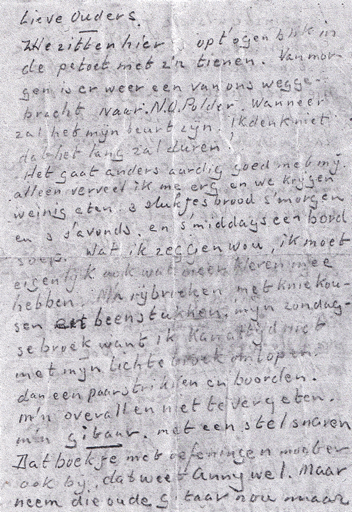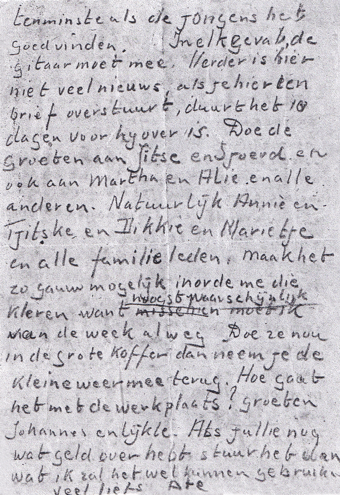 hij nog aan kleding nodig had en of ze dit wilden brengen. Dit originele briefje heb ik