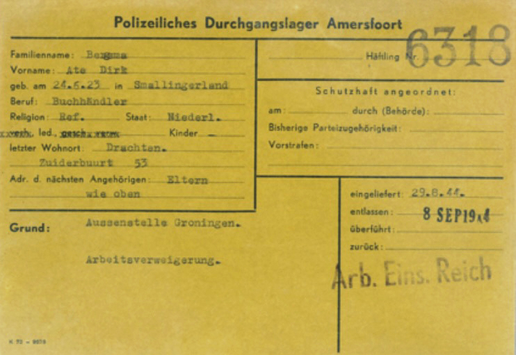Vanuit het Huis van Bewaring in Leeuwarden kwam mijn oom op 29 augustus 1944 in kamp Amersfoort aan. Zie hieronder zijn kampkaart …