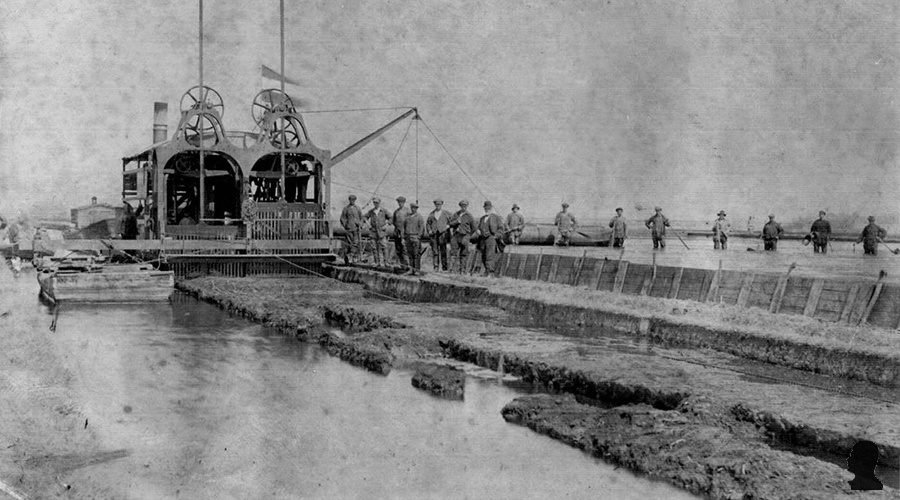 de baggelmachine werd aangedreven door stoom, en vrat zo zich letterlijk een weg door het veenlandschap