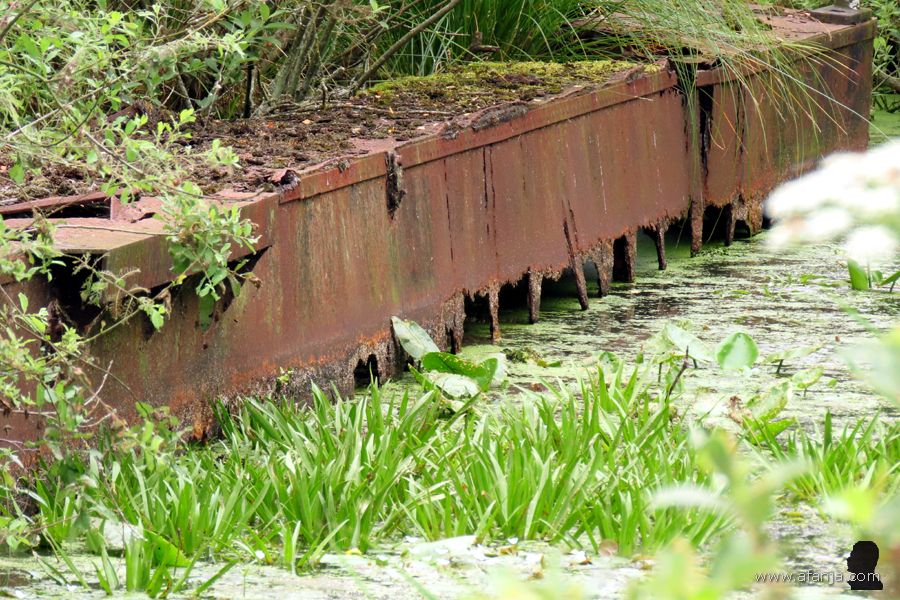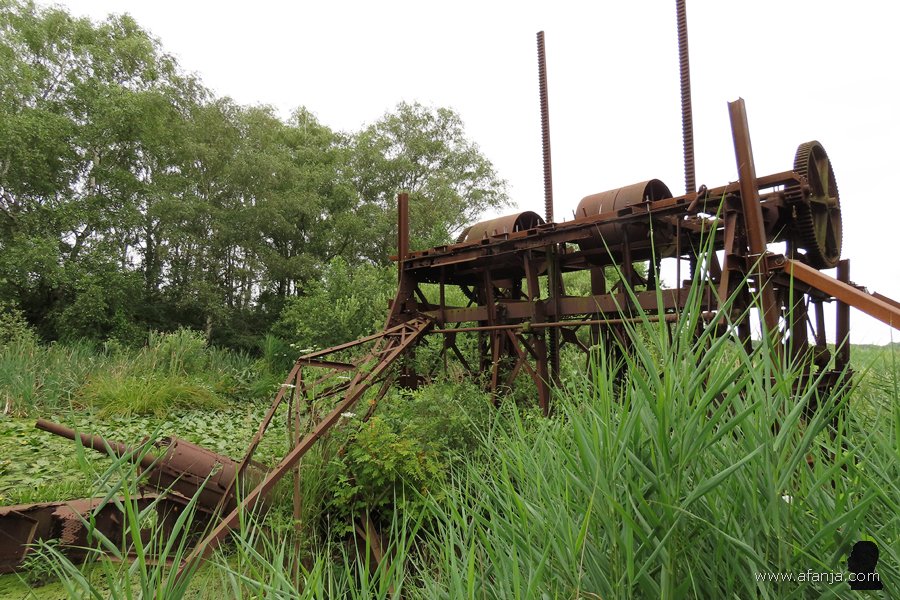 Tot zover wat algemene informatie over de (machinale) vervening, c.q. de turfwinning. In vervolg hierop morgen (een deel van) het verhaal achter de baggelmachine die hier in De Deelen ligt. Vandaag mogen jullie verder vrij rondkijken bij deze historische bonk roest. Doe dat wel voorzichtig, want je ligt zo in het veenwater …