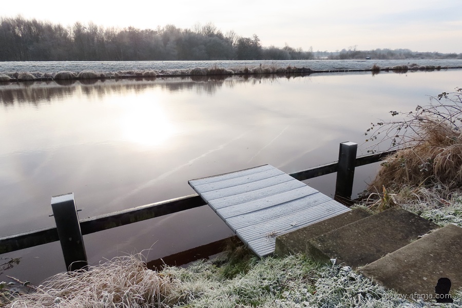 De veel diepere Hooivaart, die langs De Deelen loopt, lag nog volledig open. Omdat het op dat moment windstil was, lag het water er rimpelloos en spiegelglad bij …