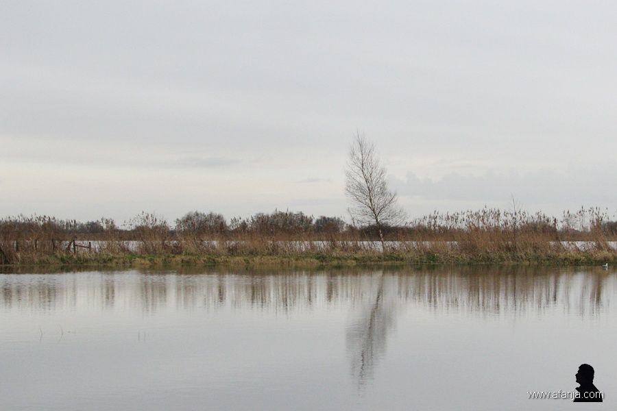 Ginds staat de vogelkijkhut met zijn poten in het water. Het was me te koud en te grijs om er naar toe te lopen, vooral ook omdat er vrijwel geen vogels te zien waren …