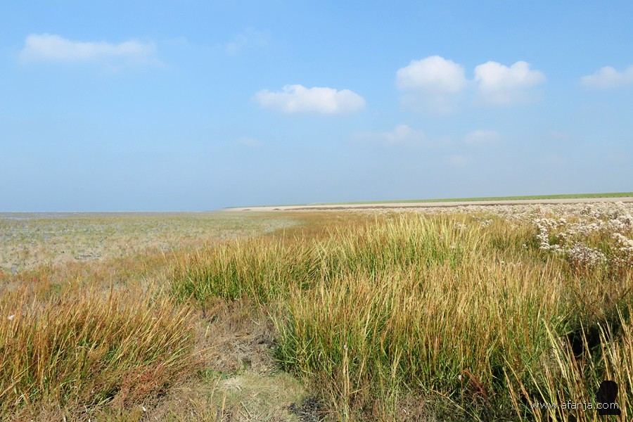 Nadat de plaatjes op de dijk waren gemaakt, daalden we de dijk af en liepen we de kwelder op. Daar wachtte ons een teleurstelling …
