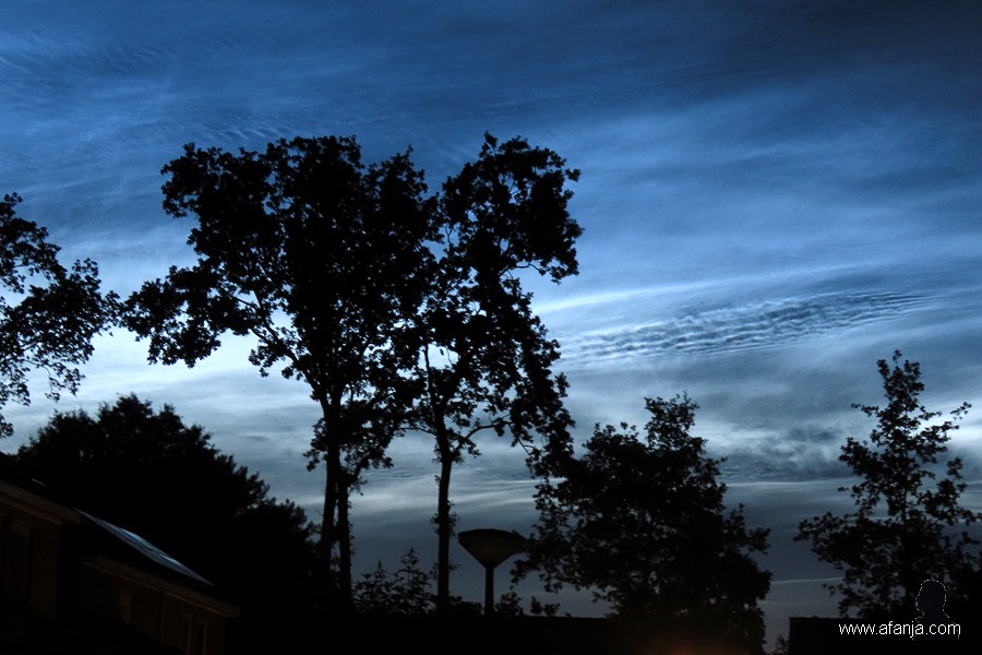 Ook afgelopen nacht waren er weer lichtende nachtwolken te zien. De lucht was een stuk helderder dan woensdag, daardoor waren de lichtende nachtwolken mooier en duidelijker te zien waren. Maar de show speelde zich helaas heel laag boven de horizon af, te laag voor mij om er tussen de bebouwing foto’s van te kunnen maken. Mijn fotomaatje Jetske heeft dat wel gedaan, haar foto’s kun je HIER zien.