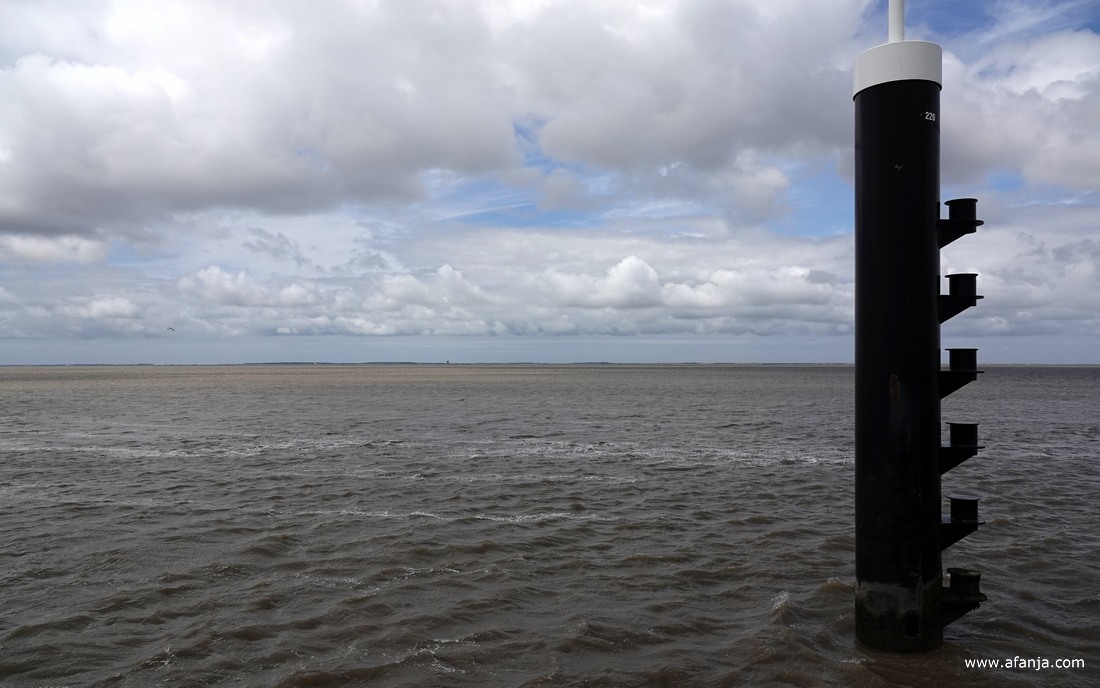 Het was rustig op de Pier van Holwerd, zodat Jetske de auto op de kop van de pier kon parkeren. Daar zagen we de veerboot naar Ameland langzaam uit zicht verdwijnen …