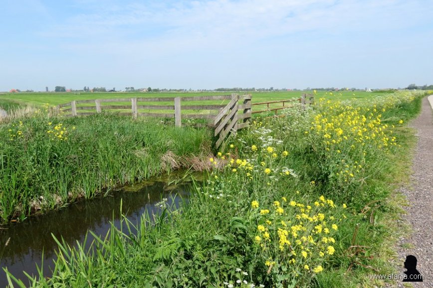Fris groene weilanden en met bloemen omzoomde wegen en sloten onder een vriendelijk blauwe lucht …