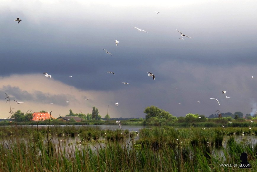 Er waren weinig vogels te zien, maar ik zat er wel lekker droog tijdens de passage van een volgende regenbui …