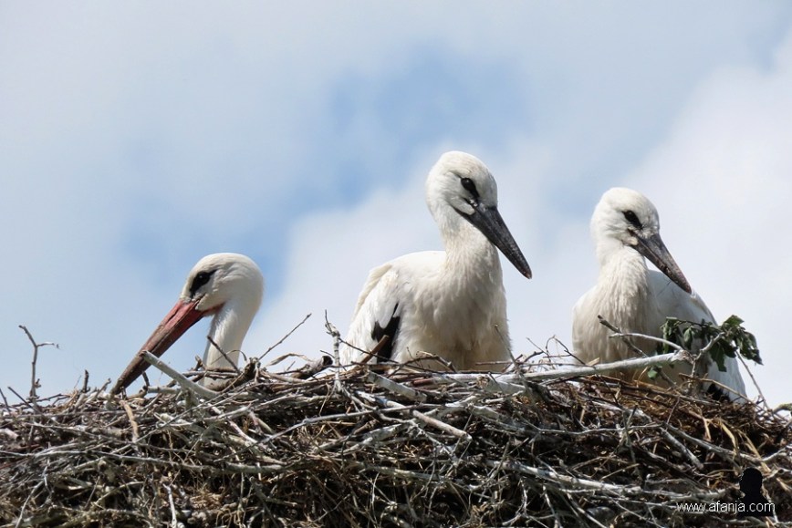 It is now more than three months since I told in Skywatch 458 that the storks at Earnewâld had returned from their winter quarters. Nature has done its job recently. In addition to the old storks, all inhabited nests now also have young ones …