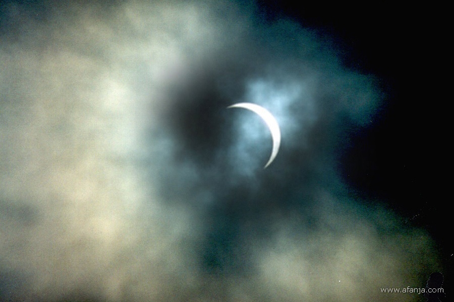 De meest bijzondere zonsverduistering die ik heb meegemaakt, was de volledige eclips op 11 augustus 1999. Hoewel Aafje en ik nog maar enkele dagen terug waren van vakantie in Frankrijk, zijn we speciaal voor die eclips nog een dagje heen en weer gereden naar Laon. Met uiterst onzekere weersverwachtingen maakten wij een verkeerde keuze. De zon ging daar vrijwel de hele ochtend schuil achter een dik wolkendek. Pas vlak na het moment van de totale verduisteringsfase begon de lucht op te breken …