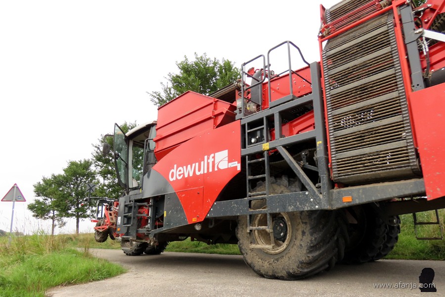 Iets verderop leek nog een combine met de graanoogst bezig te zijn. Maar het ging het me op de onderstaande foto niet om die combine, maar om de vogels die de aardappelrooiers vergezellen. Waar op het land wordt gewerkt, daar zijn ook vrijwel altijd vogels te vinden …