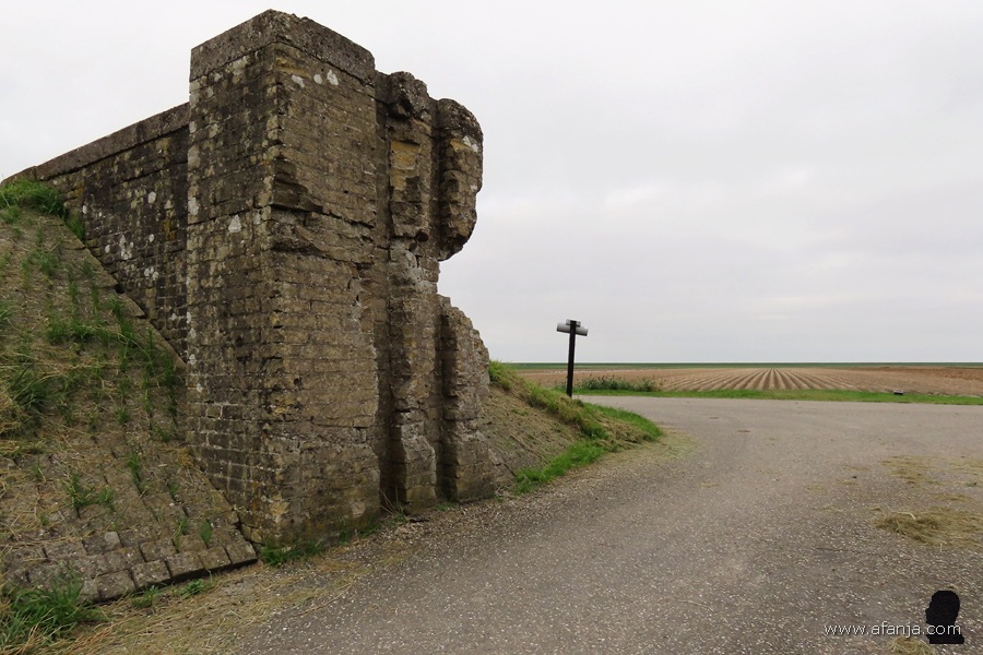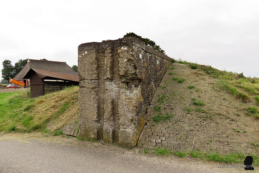 Achter de dijkcoupure bij de Alddyk 12 -14 was een boerderij afgebroken. Twee stappen voorbij de coupure om een paar foto’s maken waren voldoende om een vrouw uit een stacaravan tevoorschijn te laten komen. Ze bleek niet gediend te zijn van ongevraagd bezoek achter de oude dijk. Dat was voor ons het sein om onze reis te vervolgen. Als het zo moest, hoefde het voor ons niet meer … 😜