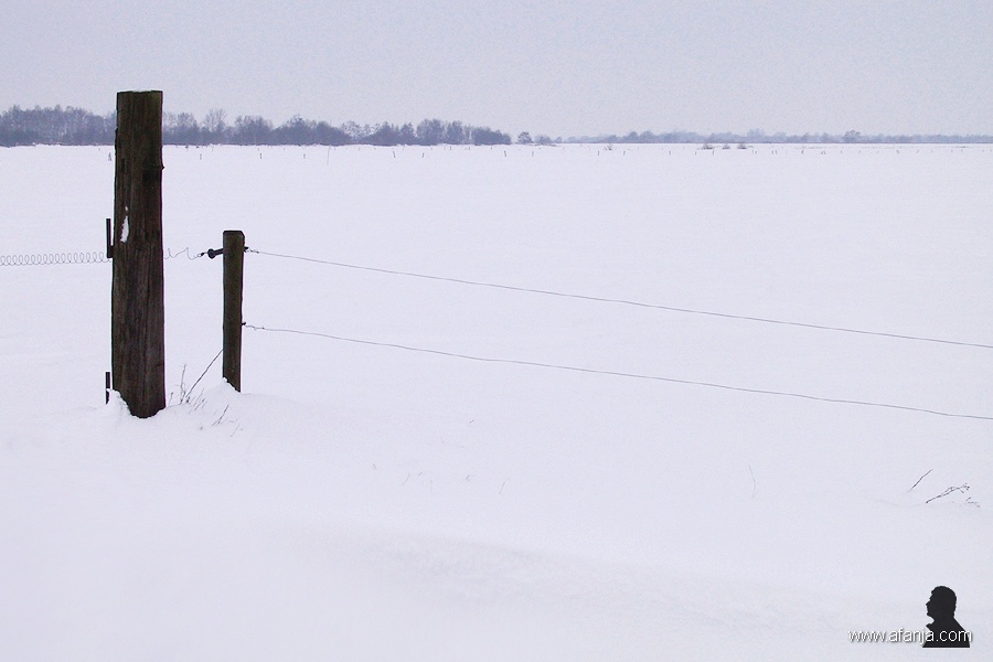 Op donderdag 4 maart 2005 – twee dagen na de zware sneeuwval – waren behalve de doorgaande wegen ook de meeste landelijke wegen weer goed begaanbaar. Na twee dagen in de sneeuw rond huis, besloot ik een ritje over het platteland te maken, en dan vooral door het weidegebied ten westen van Drachten. Het werd de eerste van twee prachtige dwaaltochten over schier eindeloze witte vlakten …Het was een bewolkte dag met af en toe wat lichte sneeuwval. Dat maakte het fotograferen er niet makkelijker op, maar vooral met de minimale landschappen aan het eind van deze serie ben ik toch wel erg blij …