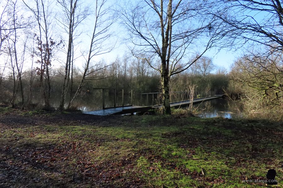 Daar kon ik kiezen uit twee mogelijkheden. Ik kon meteen linksaf slaan en dan langs het tweede petgat terug naar de parkeerplaats lopen. Dat was de kortste en makkelijkste route. De tweede keuze was om het tweede petgat over te steken over het nieuwe bruggetje …