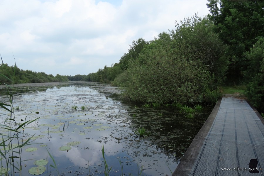 We vervolgden onze weg over het bij elke stap luidruchtig krakende vlonderbruggetje in De Deelen …