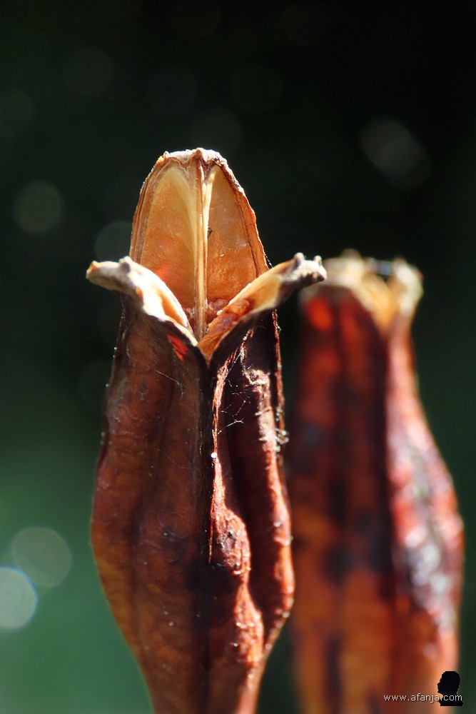 De zaaddoosjes van de blauwe iris, die in een zinken tobbe op het terras staat, komen hier bijna elk jaar wel in een kleine serie voorbij. Nadat ik afgelopen week de muntvlindertjes had gefotografeerd, ontdekte ik op één van die zaaddoosjes een nog kleiner insect dan die minivlinders …
