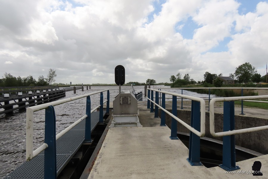 De zeilboten vervolgden hun weg in de richting van het Lauwersmeer en het brugdek werd weer gesloten. Jetske was intussen ook bij de sluis gekomen, zij stond aan de andere kant op me te wachten …
