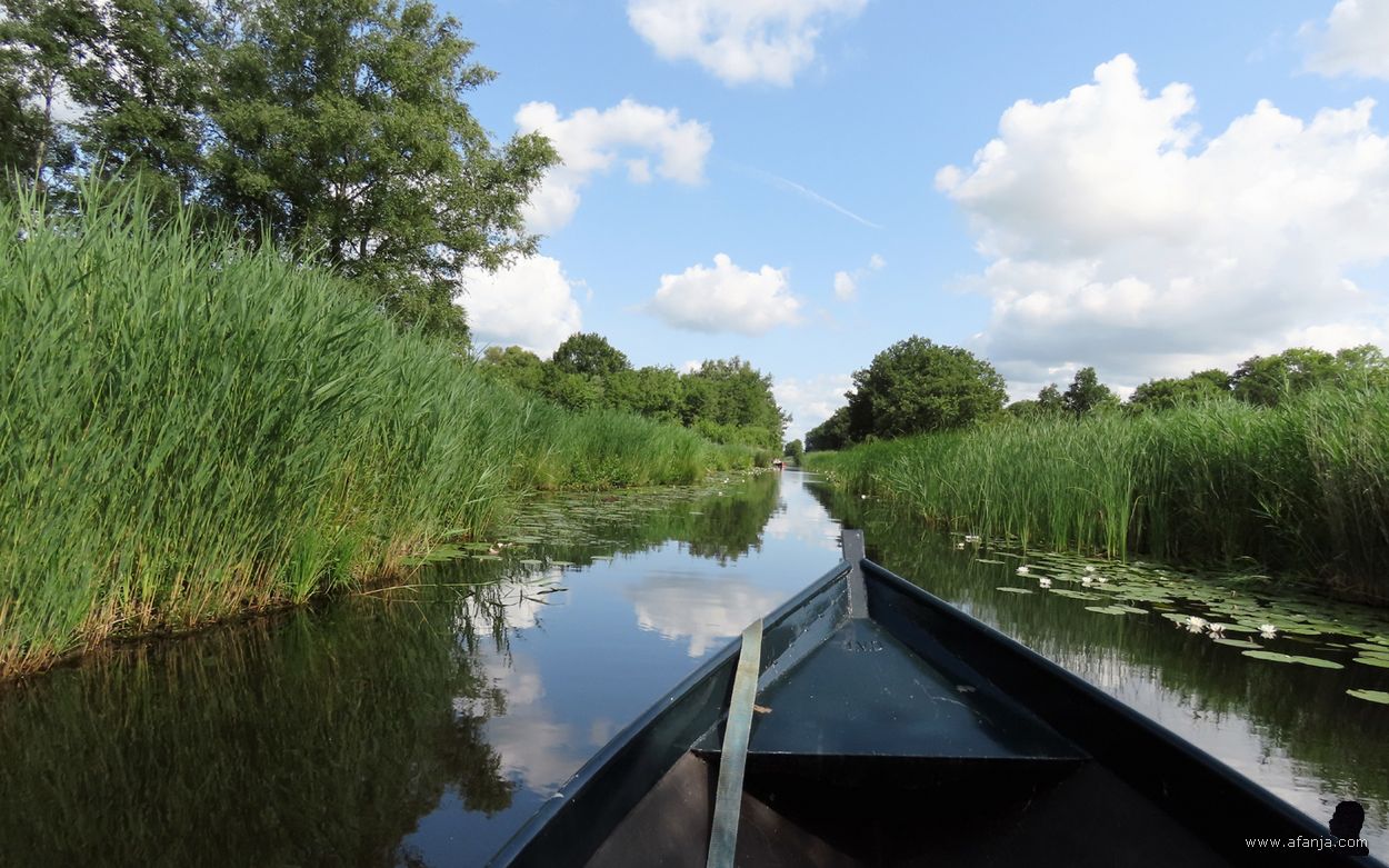Ik kreeg een plekje in het midden van de boot toegewezen, waarna Jetske de motor startte. Jetske, die in haar tienerjaren als het zo uitkwam al als stuurvrouw aan het roer van een rondvaartboot stond, kent de wateren in de Weerribben en de Wieden op haar duimpje. Het voordeel daarvan is, dat ze me met dit vaartochtje weer langs mooie, hier en daar onverwachte plekjes wist te voeren …