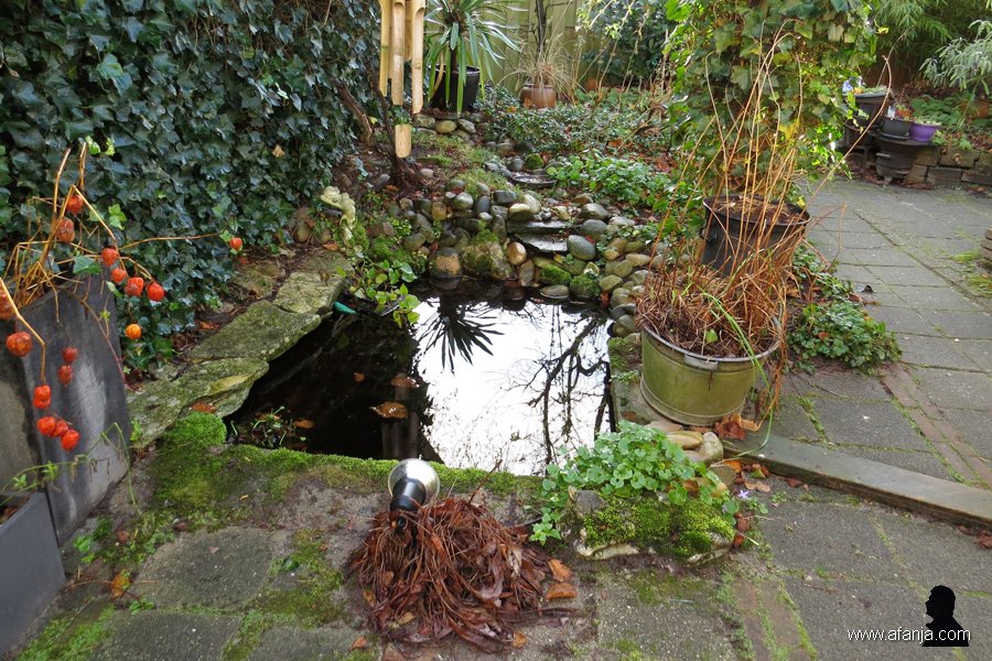 De winter van 2013-2014 heeft in ons tuintje sinds 1 december slechts drie maal een nacht met lichte vorst opgeleverd met een laagste temperatuur van -1,9 ºC, en we hebben nog geen vlokje sneeuw gezien. Op de rand van de vijver staat momenteel zelfs een campanula vrolijk te bloeien alsof het eind mei, begin juni is …
