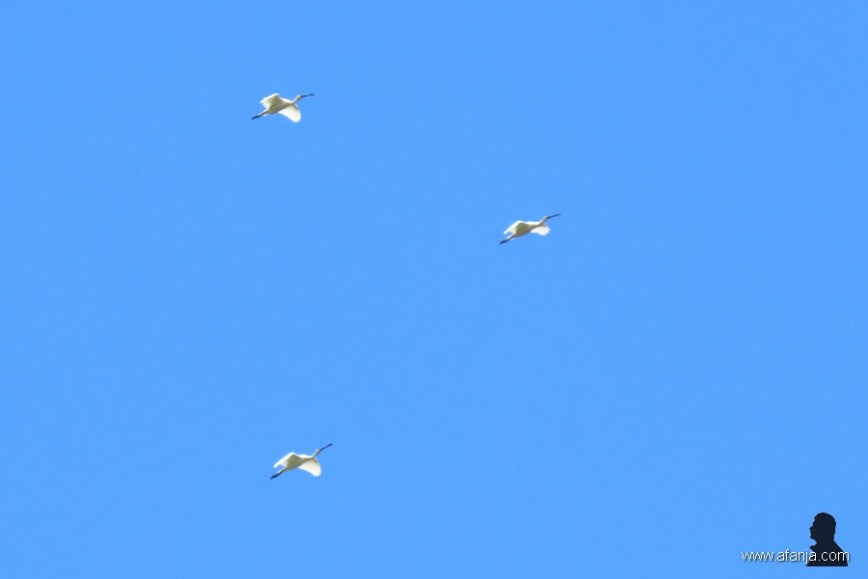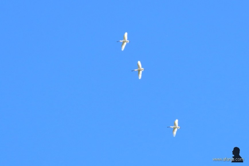 Pas toen ik maximaal inzoomde kon ik zien dat het lepelaars waren. Geen alledaags trio in deze omgeving, maar het was een prachtig comité van uitgeleide om de dag mee af te sluiten …