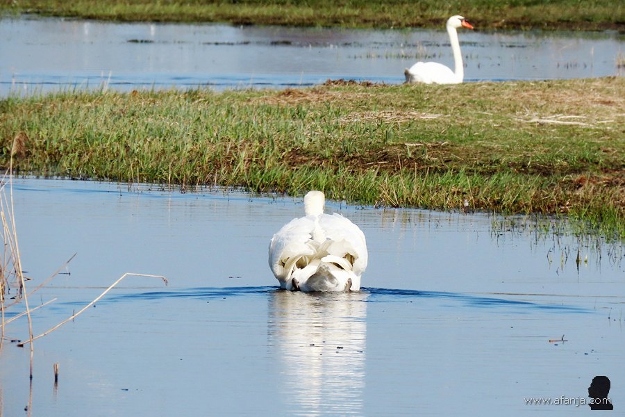 Ik stond al op het punt om te vertrekken, toen ik een stukje verderop nog twee knobbelzwanen zag, die duidelijk in een amoureuze bui waren …
