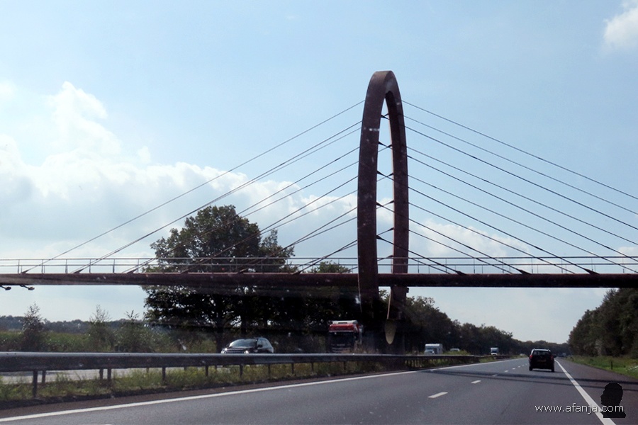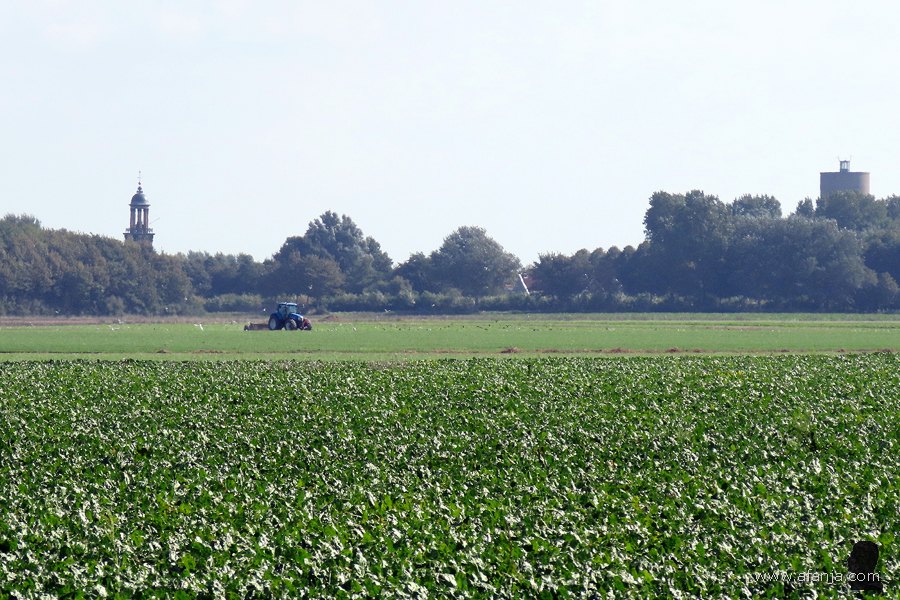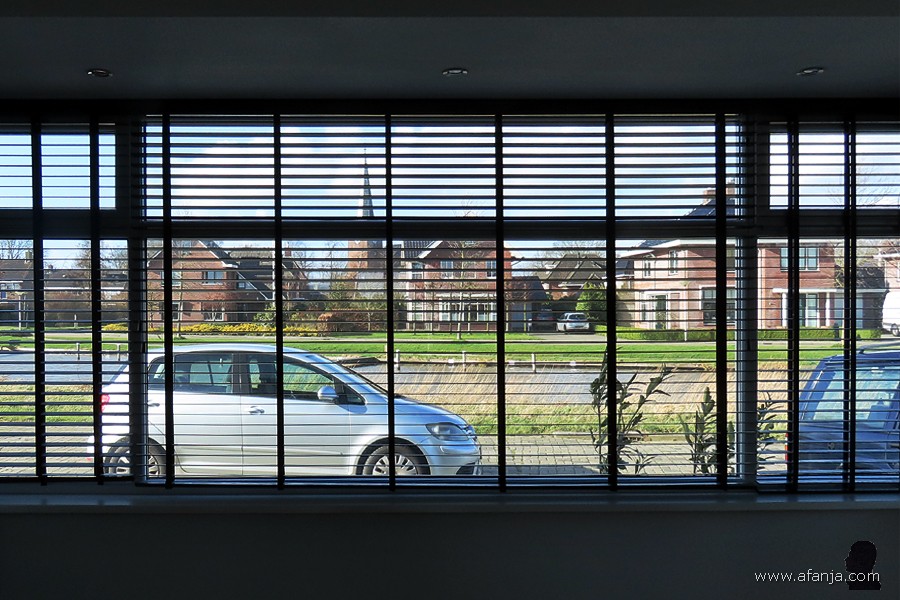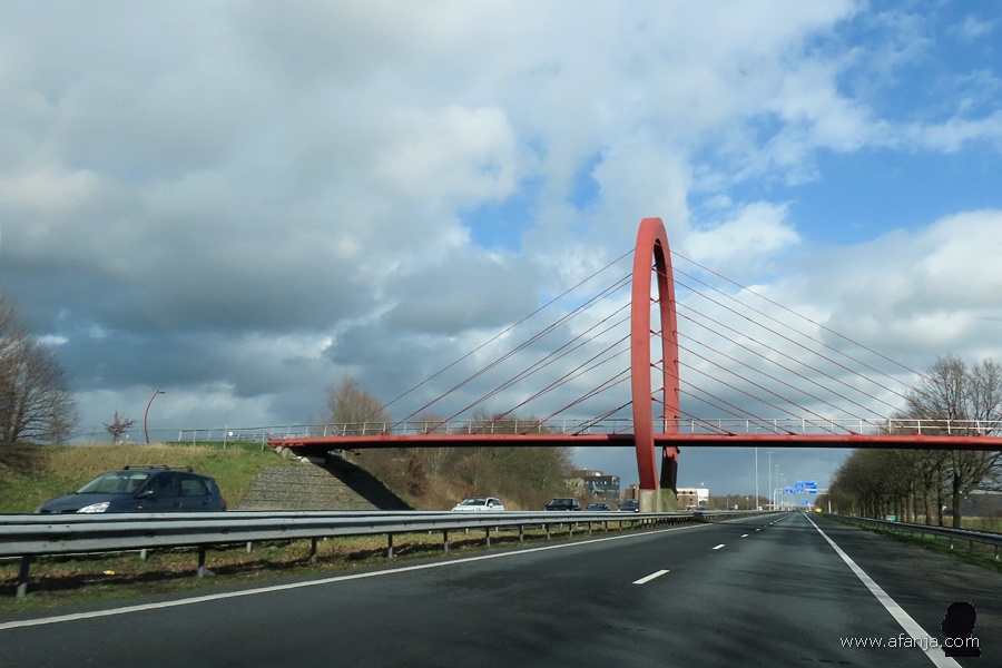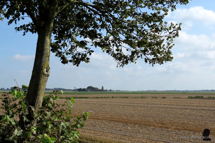 Onderweg op e-bike en i-Lark had ik verteld, dat ik maandag zwarte sterns had gefotografeerd bij de vogelkijkhut ‘Blaustirns’. Echt mooi waren die foto’s niet geworden, omdat het bewolkt was op dat moment. Aafje, die ons nog niet had verwacht, vond het prima dat we nog even naar de Leijen zouden rijden om er hopelijk nog wel wat zonnige foto’s van te kunnen maken. Ditmaal pakten we de auto. Een minuut of 20, nadat we Drachten hadden verlaten via de fietsbrug de Slinger (foto boven), keken we vanuit de vogelkijkhut uit over de Leijen …