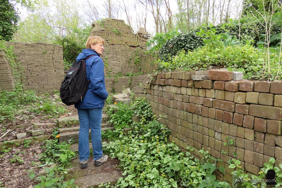 Om te voorkomen dat Aafje ongerust wordt, besluit ik na enige tijd de terugweg te aanvaarden. Terug om de hoek, zie ik haar een stuk verderop al staan. Kun je nagaan hoeveel stenen alleen al in dit deel van de Ecokathedraal zijn verwerkt …