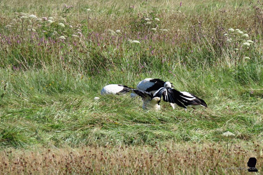 Daar stond de partner al te wachten. Na de landing zetten ze samen even een luid geklepper in …
