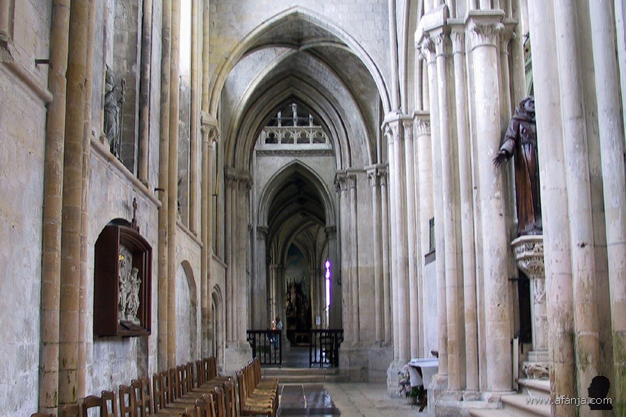 Ik geloof niet dat Eu erg veel te bieden heeft, maar de monumentale ‘Notre-Dame en Saint-Laurent’, gebouwd tussen 1186 en 1240, was wel een tussenstop waard. Met zijn enorme formaat van 80 m lang, 17 m breed en 20 m hoog leek de kerk me overdreven groot voor het dorp …