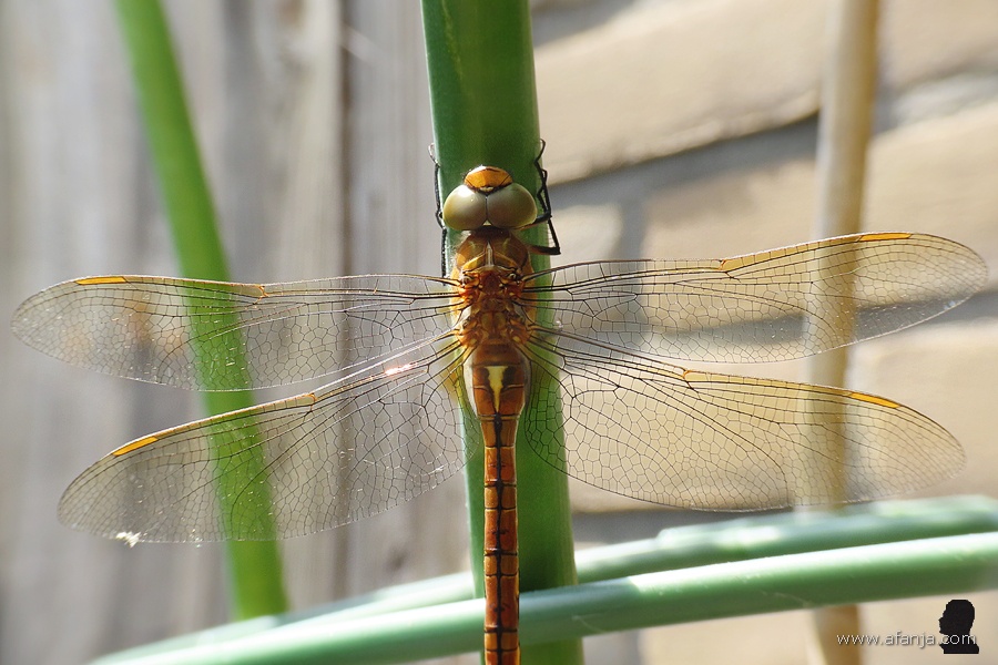 Maar dat is bij een waterjuffer of een libel meestal niet zo erg. Vaak komt een juffer of libel na een korte vlucht al snel terug naar het takje of twijgje waar hij op zat. Deze houtpantserjuffer had die ochtend al eerder een korte vlucht gemaakt om daarna weer op de plaats van vertrek terug te keren …