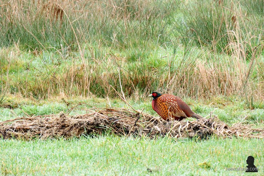 Terwijl ik in de buurt van Earnewâld rustig voort tufte, zag ik een fazant lopen. Nu gebeurt dat wel eens vaker, maar meestal tref ik ze om de een of andere reden in een tegenlichtsituatie aan. Dit exemplaar stond nu eens een keer heel mooi in het door cirruswolken gefilterde zonlicht, en hij bleef ook nog even keurig poseren, totdat ik een paar foto’s had gemaakt. Daarna verdween hij weer in het struweel …