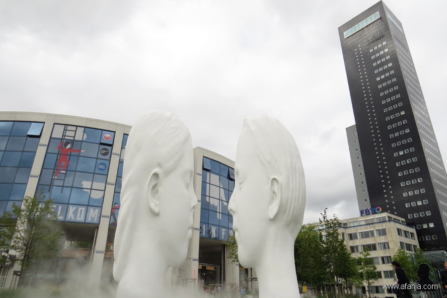 De gebouwtjes van het VVV en diverse lokale middenstanders konden me niet echt bekoren, maar de tropische verrassing lag vlak vóór die gebouwtjes: de Visfontein van Stavoren …
