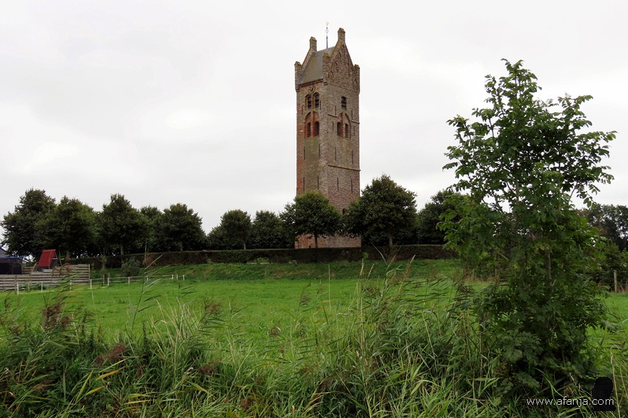 Maar het leverde aan de voet van toren en terp toch wel een paar fraaie plaatjes op. Tot 1794 stond er een uit de 13e eeuw daterende hervormde kerk op de terp. De kerk werd in 1794 afgebroken, omdat hij te bouwvallig en te gevaarlijk werd om er nog diensten in te houden …