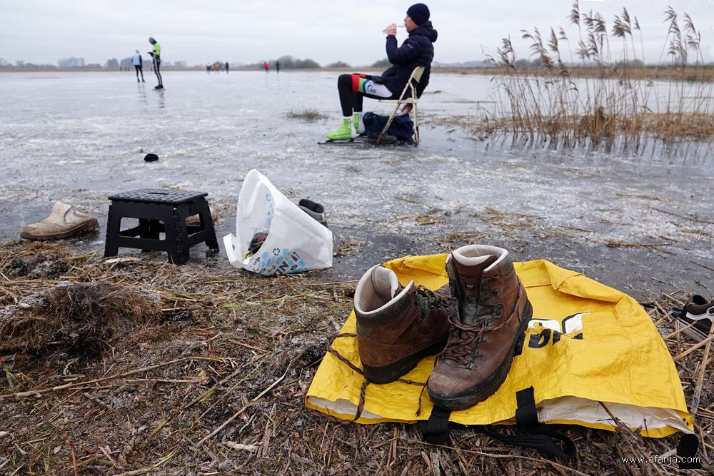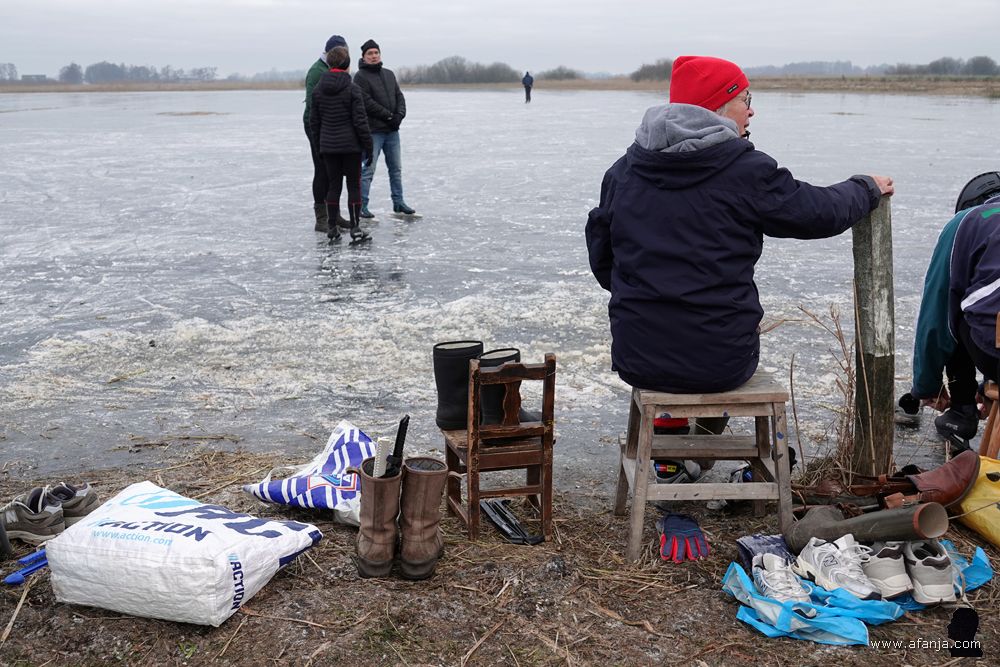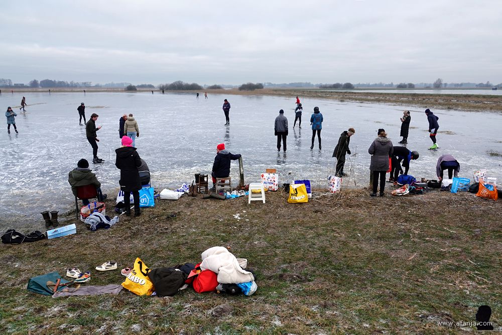 Maar hoe grijs en kil het ook was, op het ijs van de Noarderkrite kon nog steeds geschaatst worden. En dat gebeurde dan ook volop. Het leek er zelfs drukker dan een dag eerder …