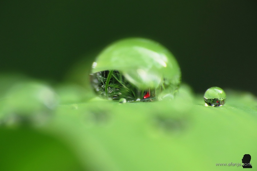 Dat gaf mij natuurlijk wel de kans om weer wat druppelfoto’s te maken met als thema ‘zoek de kleine rode stip in de zee van groen …’