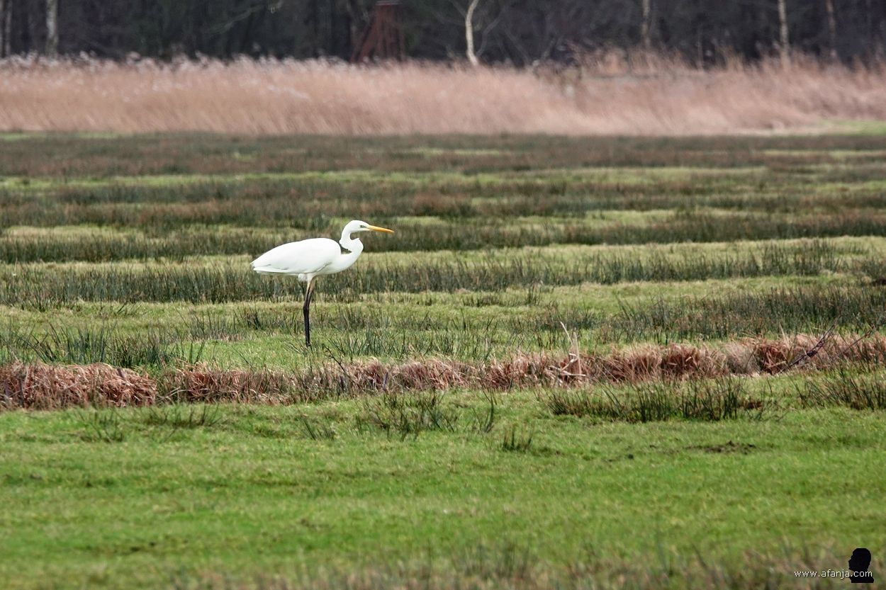 De reeën waren een mooie onderbreking geweest tijdens ons ritje naar de Jan Durkspolder. Terwijl we in rustig tempo voort hobbelden over het heuvelachtige wegdek van de laatste 400 van de Geau, zag ik in de verte al een grote zilverreiger bij de vogelkijkhut staan. “Wedden dat hij straks weg is,” zei ik tegen Jetske, toen we uitstapten …