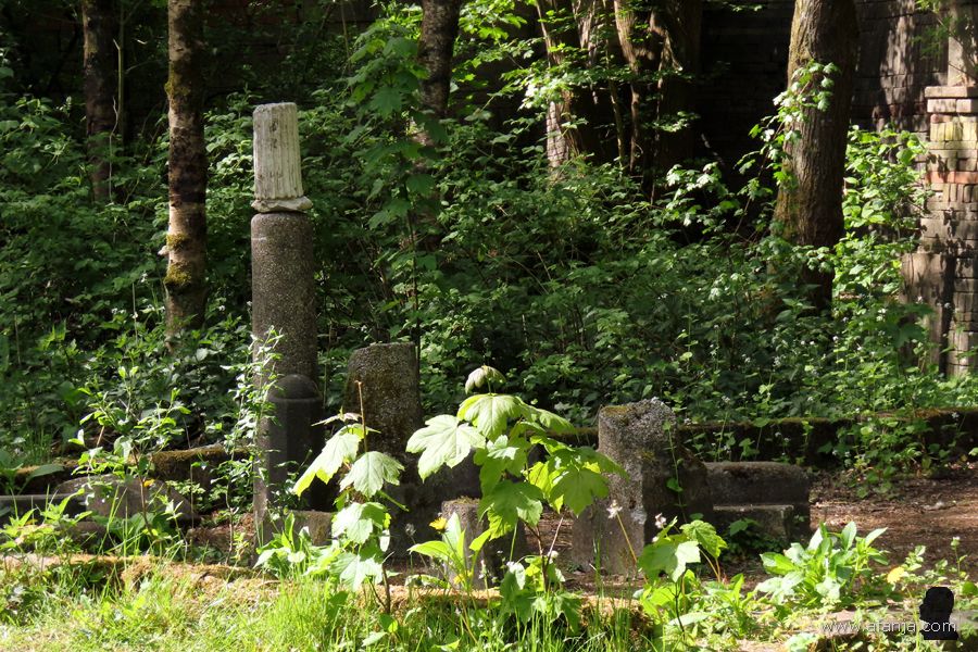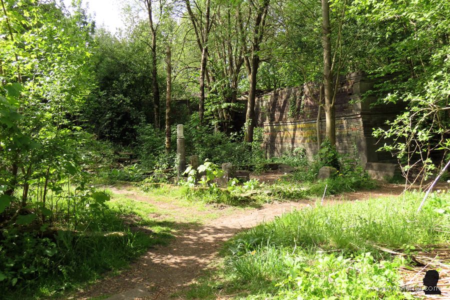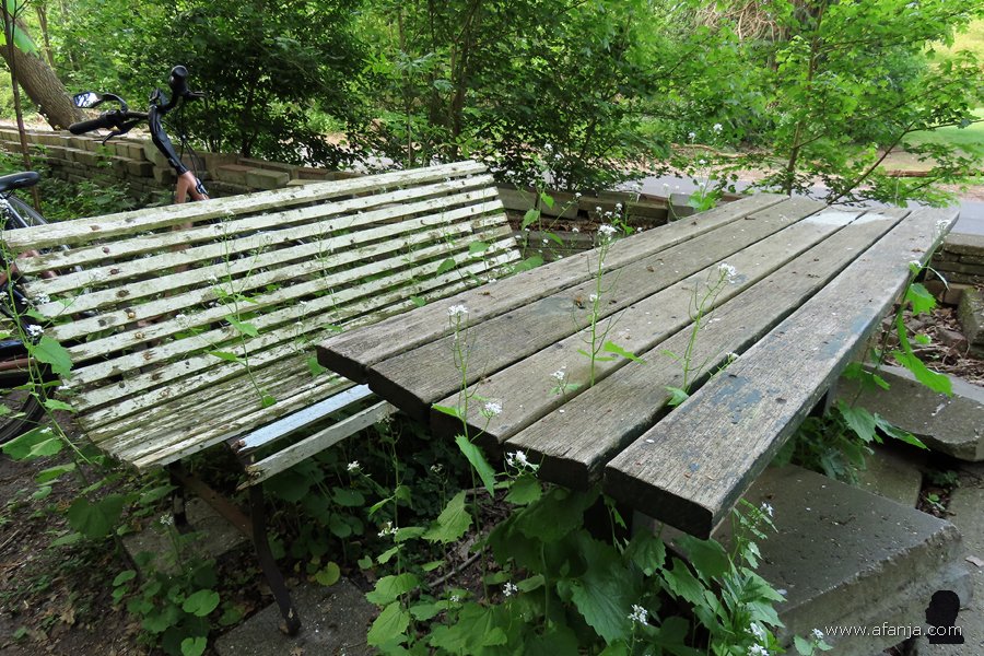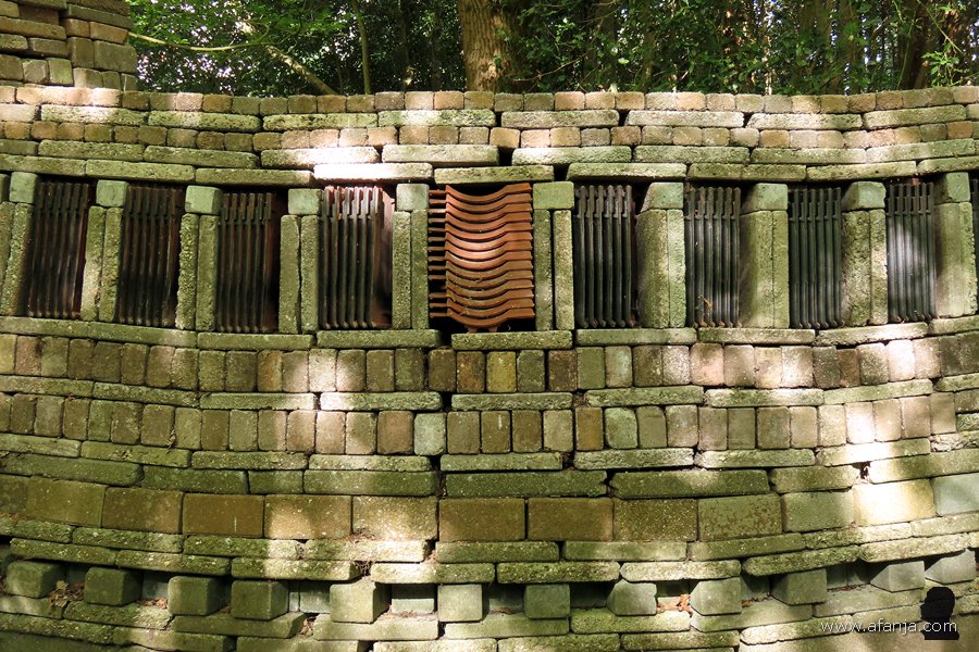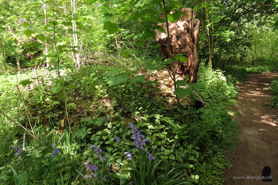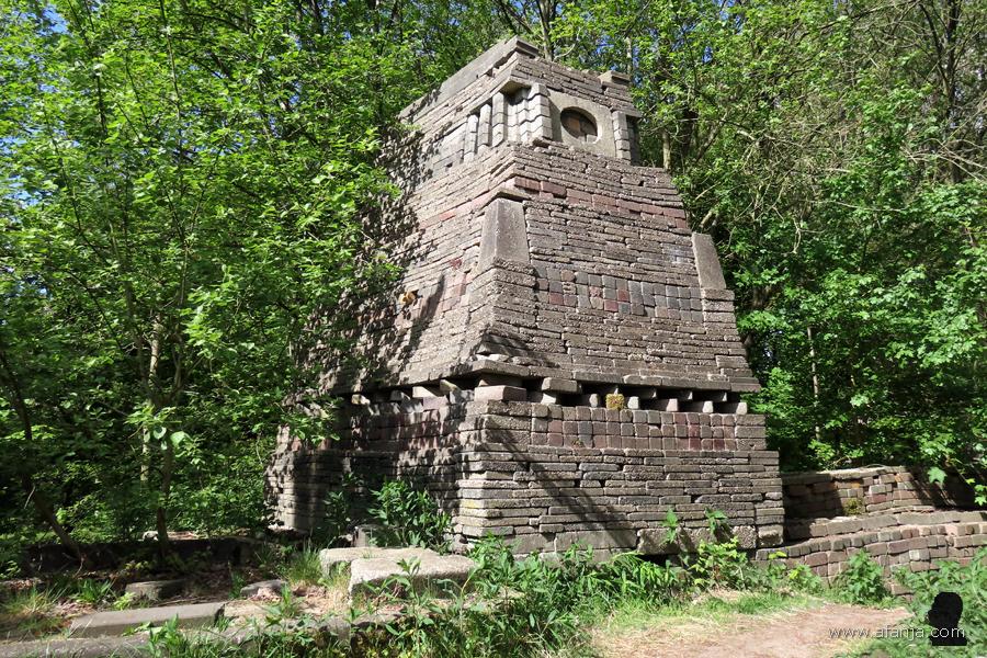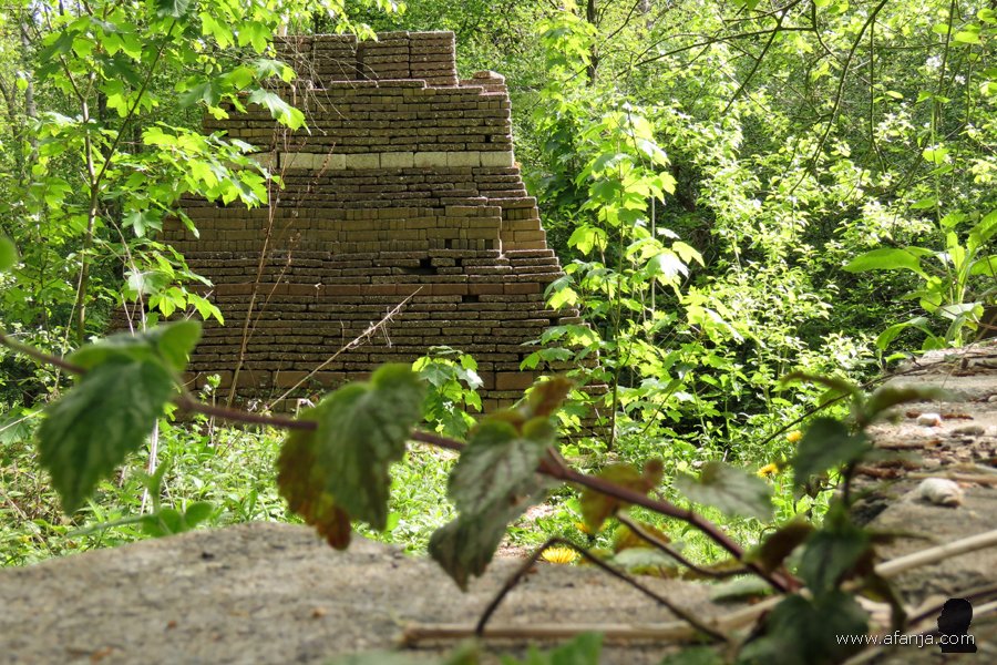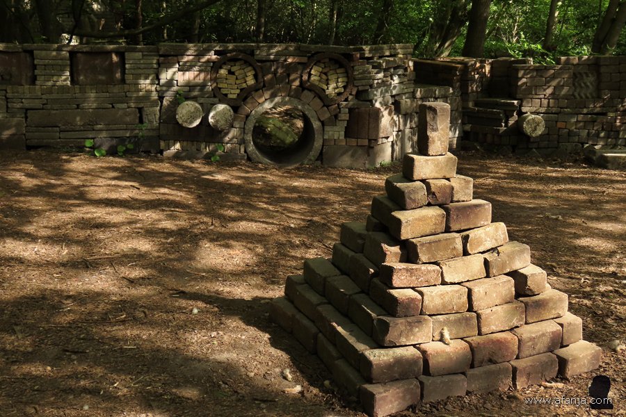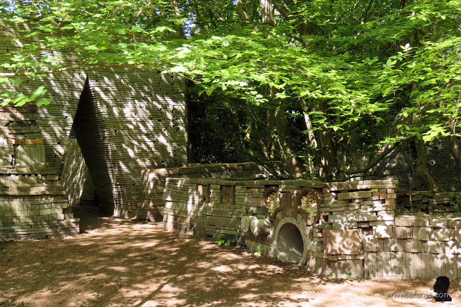 Bij het koepelbouwwerk ligt wat snoei- en afvalhout afkomstig van één de bomen, die onlangs zijn gesneuveld. De boom zelf ligt een paar meter verderop nog over een paar lagere bouwwerken. Ook verderop is goed te zien dat sommige bomen en struiken hun beste tijd hebben gehad. Komen we in het achterste deel, dan lijkt de schade weer mee te vallen. Dat is misschien te verklaren uit het feit dat daar in de loop der jaren al meer bomen tegen de vlakte zijn gegaan …