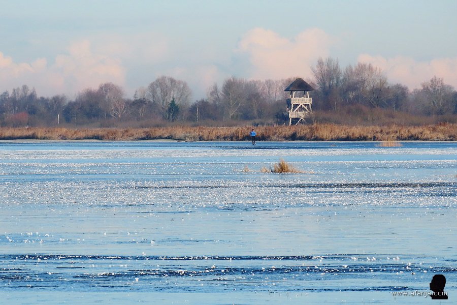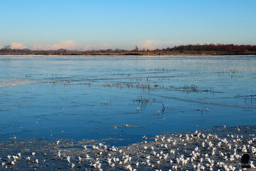 De dooi was in grote delen van ons land al ingetreden, maar op het ondergelopen land bij de Hooidammen ten westen van Drachten kon zondag 14 december nog geschaatst worden. Aan het begin van de middag werd de lokroep van het ijs weer zo sterk, dat ik er toch nog maar even naar toe ben gereden …