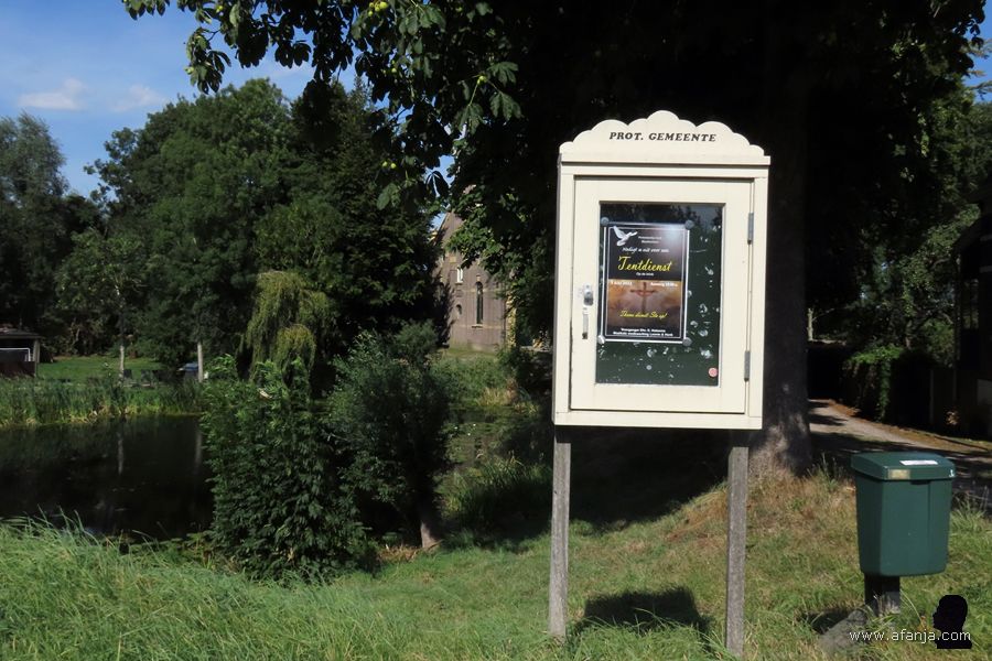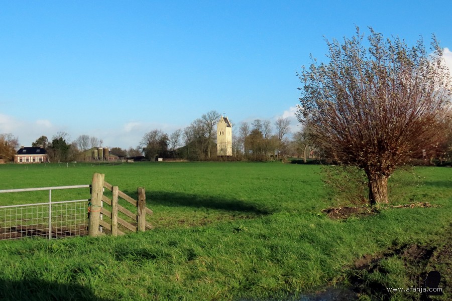 Normaal gesproken ben ik niet zo’n kerkganger, maar ik vind het altijd wel mooi om een oude kerk te bekijken. Het is alleen zo jammer dat je vrijwel nooit even ergens een kijkje binnen kunt nemen. Maar het rondje om de kerk, dat zeker de moeite waard was. Het viel alleen toch weer niet mee om daarna de dijk te beklimmen …