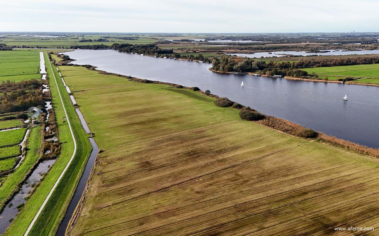 Nadat ik vanuit de lucht een tijdje had rondgekeken bij de Boornbergumerpetten, besloot ik onderweg naar huis nog weer even naar de Bûtendiken te rijden. Ik hoefde er maar een kleine omweg voor te maken en ik had nog genoeg power in de batterijen om hier nog even een rondvlucht te maken. Bovendien leek het voorlopig de laatste mooie dag te zijn om even te vliegen …